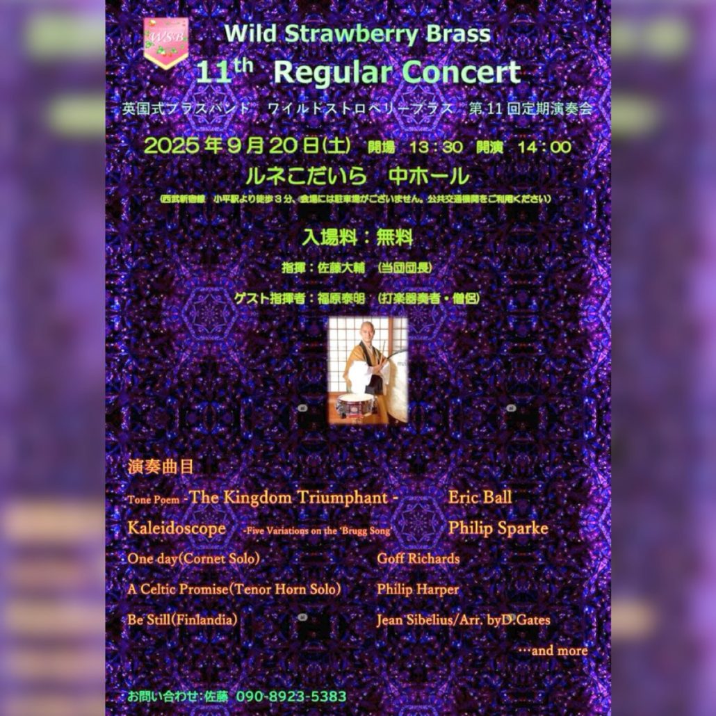 東京都小平市を拠点とするブラスバンド、ワイルドストロベリーブラスさんの第11回定期演奏会にて、ゲスト指揮者として振らせていただきました。
